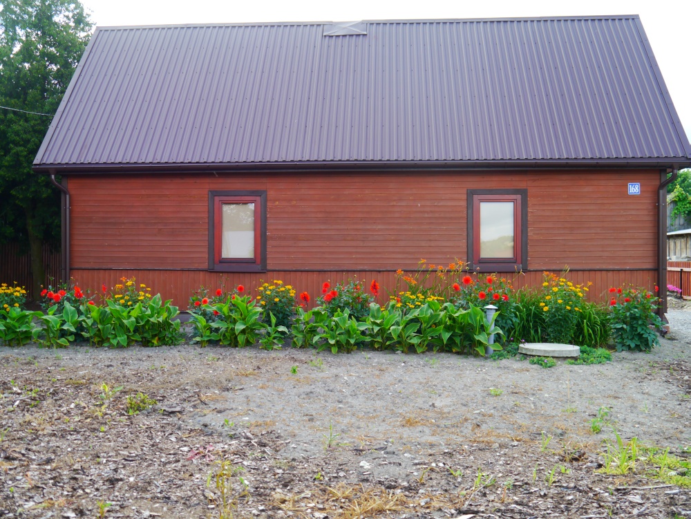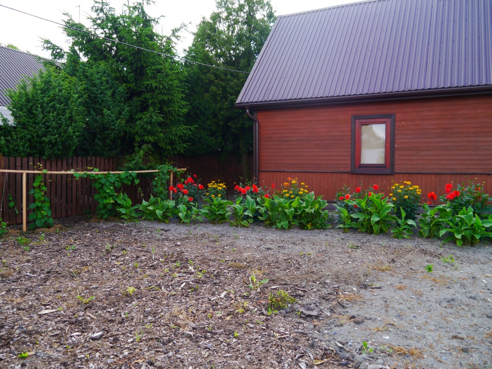 Poza wymienionym wyposażeniem przed domkiem znajduje się ogródek z warzywami, ziołami i drzewkami owocowymi, które pozostają w dyspozycji dla naszych Gości. Przed wejściem znajduje się obszerny plac, gdzie można pozostawić samochód oraz trawnik z altanką, gdzie organizować można grille.